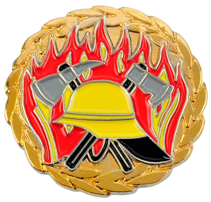 Iron and copper stamped lapel pins are well-priced. Recessed parts can be filled with soft enamel. An additional surface protection is possible by covering with epoxy.