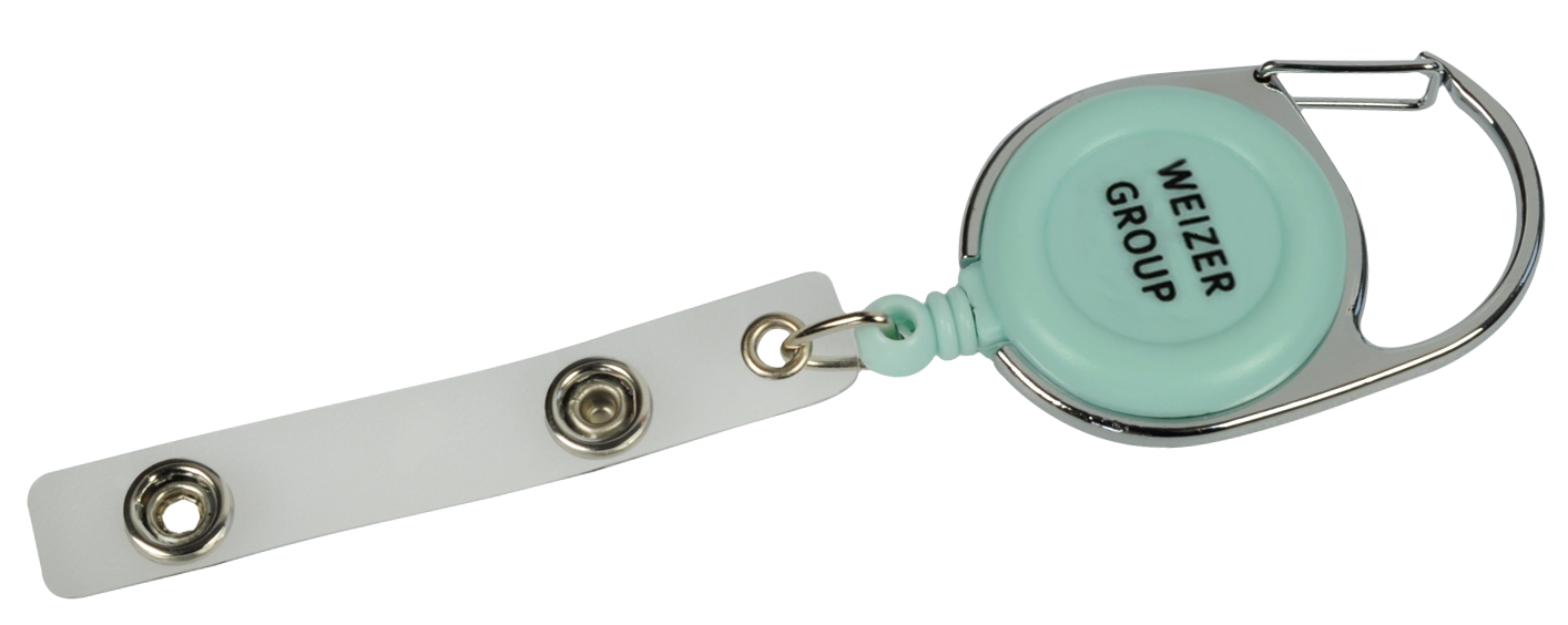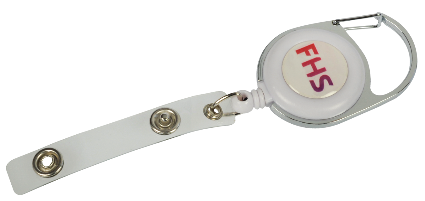 In addition to the basic colours black and white, we also offer these plastic badge reels dyed according to Pantone, silver or transparent.